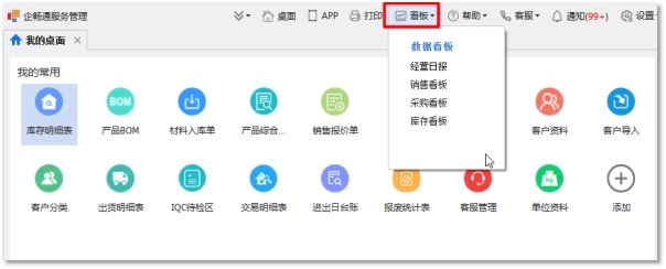 按钮下拉看板列表,选择需要的看板类型进入看板