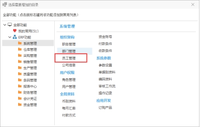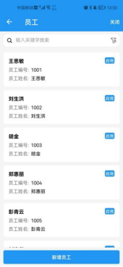 管理员工资料,设置员工基本资料信息,例如,手机,职务,部门等基本信息,在其他录单中用于显示单据经手人等信息。