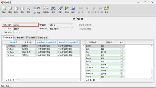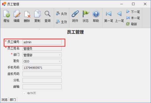用户编号和员工编号必须保持一致。例如下图用户资料和员工资料都存在“admin”