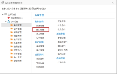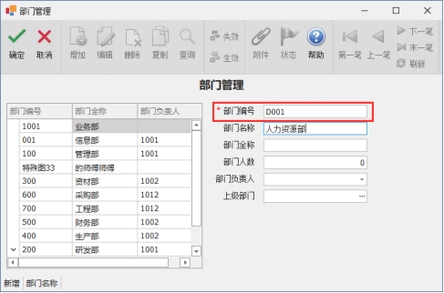 在其他系统中,例如:采购系统,销售系统,生产系统,财务系统等子系统中,“经手部门”来源于部门管理资料,因为在使用其它子系统前务必增加必要的部门信息