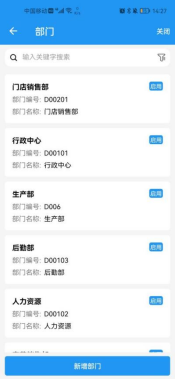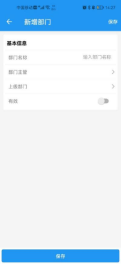 APP中可以管理部门信息,进入部门管理,点击新增部门填写基本资料后即可完成新增。