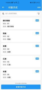 APP中进入资料页签,选择付款方式,点击新增付款方式进入新增页面,填入基本信息即可完成新增。