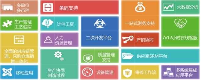 企畅通ERP软件由多个组件层架构,不光提供默认的模块,还提供二次开发等定制功能。前段由供应链管理系统,后段由财务管理系统,同时搭配大数据分析系统使三者完美契合在一起,并前后相关联和相互影响。与之配套的集成应用平台可外接其他系统,同时也可提供接口访问内部数据。