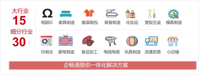 使用企畅通ERP系统可以完美契合常用的行业,拥有30+个大行业的解决方案,特别是在制造业拥有丰富的行业经验。在日常运行中不光贴合企业实际应用场景,可也灵活的提出可选方案优化实际流程。至今为止已经有超过500+制造业客户30+行业门类在稳定运行。