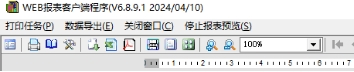 打印预览可将打印报表导出Pdf,Excel,图片,网页等常见文件格式。在打印预览页面导出面板点击相应的按钮或点击“数据导出”菜单可导出为文件。