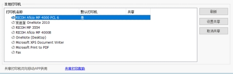 2)在打开的共享打印机页面选择当前连接的打印机,并点击右侧的“设置共享”按钮既可以将该打印机共享到公司,完成设置共享后本次配置即完成。如果需要取消共享可点击取消共享按钮,详细的共享打印配置方法请参照帮助中心。