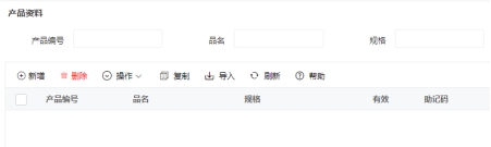 产品资料是将企业主营的产品进行编码建档入系统,这将是使用系统的最为重要的资料。建立产品资料可以选择手工录入或者EXCEL导入。进入【仓库管理】-【产品资料】中可以录入产品资料,如果产品数量较少可以选择手工录入(点击新增按钮),如果产品资料众多则可使用EXCEL导入(点击导入按钮)。您可以选择合适的方法进行产品资料录入。