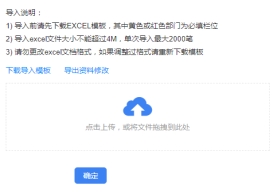 3)如果资料较多可以选择EXCEL导入模式,在清单列表视图下点击导入即可,在导入页面点击下载导入模板菜单先下载导入模板,再模板中填好信息后再点击上传文件,最后点击确定按钮导入。
