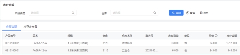 库存金额表:查询当前库存数量和库存金额,用于直观统计当前库存金额分布状况