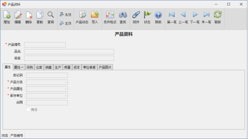 产品资料是库存系统中描述产品规格的资料,包括产品的名称、规格、单位、属性、图片、图纸等参数。并管理在销售、采购、财务、生产、成本系统中的基本属性。在生产管理系统中,产品资料也作为BOM的基础结构资料。