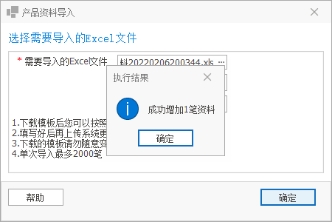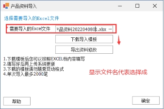 4)上传模板:在“产品资料导入”功能中选择需要上传的模板(如下图),如果导入成功则会显示文件名称(如下图)。