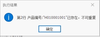 7.1)弹出以下提示代表已经存在相同的产品编号,需要修改产品编号后重新上传,产品资料中的产品编号唯一值不可重复。