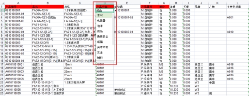 (存在下拉列表的列需要下拉,不可手工输入其他数值)