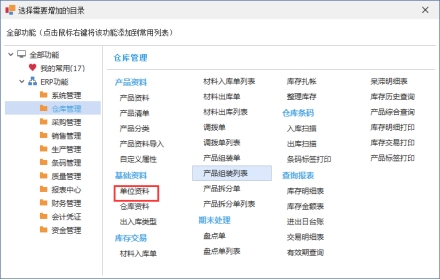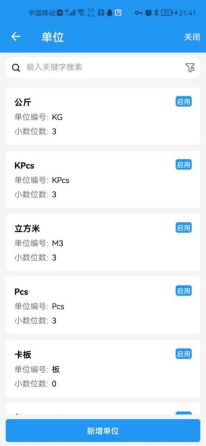 系统在初始化的时候默认预设了以下单位,可以根据需要增减