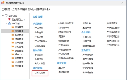 仓库材料入库,适用于无来源类型的材料入库, 如果找不到来源单据,则可使用材料入库单来入库,