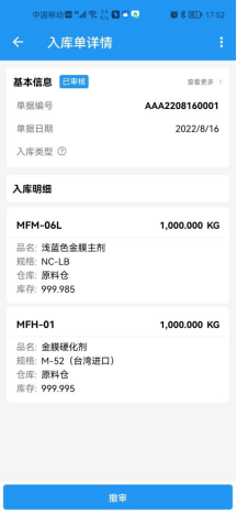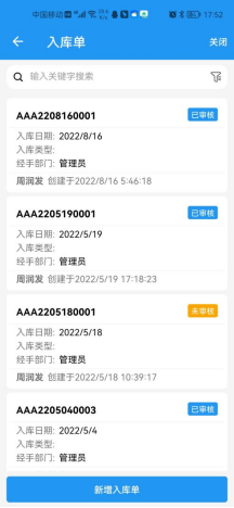 使用APP管理材料入库单,包括新增,编辑,删除等