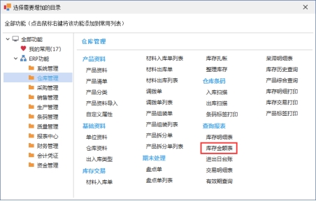 3)查询指定仓库的库存金额,在仓库选择指定的仓库,可以多选