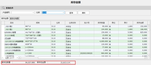 1)查询所有库存金额明细,当该作业打开时将自动查询和显示所有的库存