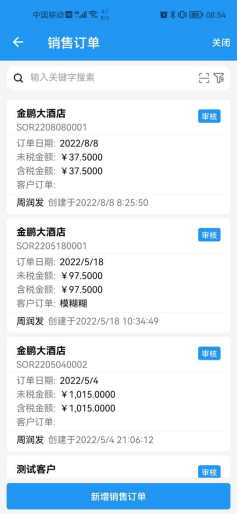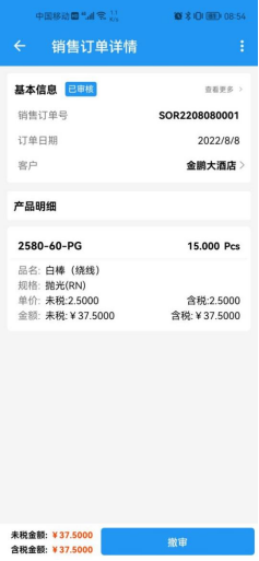 销售订单支持App中管理订单资料,使用App可在手机中快速建立订单或编辑订单资料,使用App在订单中也可快速串查订单相关的报表