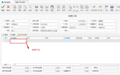 3)输入下单明细,选择需要下单的产品编号,可以选择有效的产品