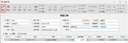 6.将客户下单信息录入销售订单,指定销售单价,金额和交货期等信息