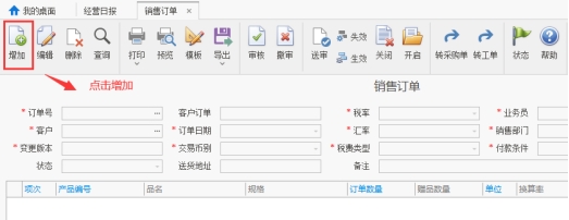如果本次销售订单产品是需要厂内生产,可以将销售订单直接转成生产工单以完成后续生产流程。在销售订单界面可以直接转入生产工单,以简化操作。需点击如下图的菜单来进入操作画面 。