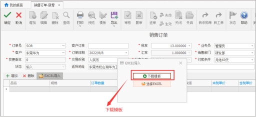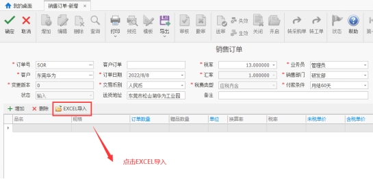 销售订单可以使用EXCEL进行导入,适用于大批量订单录单的情况,下面介绍操作步骤: