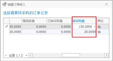 3)勾选需要转入采购订单的项目,如果不勾选则不会转入