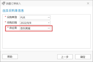 5)在如下图中,选择采购的供应商,然后点击确定即可完成转入采购作业