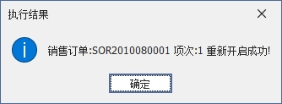 开启订单成功后,将弹出成功提示。订单即可恢复到打开状态,可以进行出货,生产等后续步骤