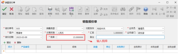3)输入报价税率,税率按照%输入,例如税率13%,则输入13