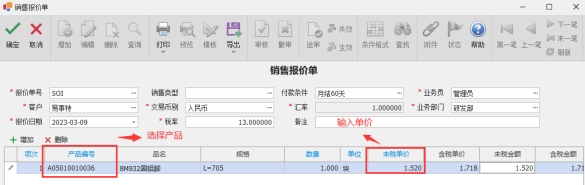 销售报价用于针对客户需求,提供产品报资料。报价单在审核报价后,将会进入客户单价薄 中记录,可以随时查询客户产品单价。
