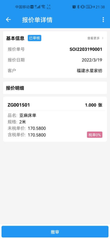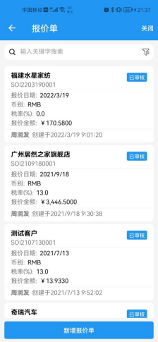 销售报价支持App中管理报价资料,使用App可在手机中快速建立报价单或编辑或删除报价资料,使用App在订单中也可快速串查报价相关的报表