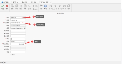 手工新增客户单价,可以跳过做报价单此步骤,新增号客户单价后,将在下订单时自动带出单价