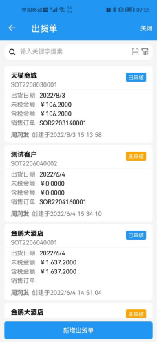 在App中可以快速建立出货单或编辑和删除出货单,使用App可以快速扫码条码生成出货单,并提供审核和撤销审核的功能。未审核的出货单将直观显示库存信息