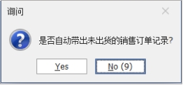 2)弹出“是否自动带出未出货的销售订单记录?”在弹出的询问对话框点击是,将自动带出未交的订单数据到单身