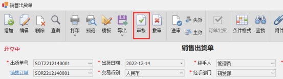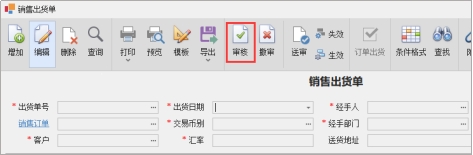 3)录入合并订单出货单后,需要进行审核,审核完成后将自动扣除库存 。如果库存不足则会审核失败。