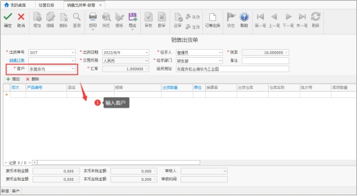 1)使用无订单出货新增时,只需要输入客户即可,销售订单无需输入
