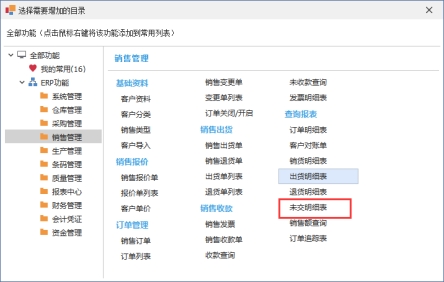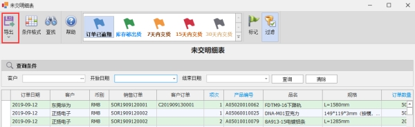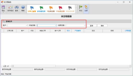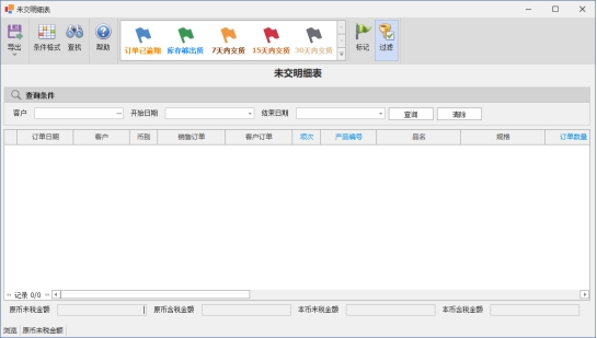 未交明细表用于查询客户未出货的订单记录,在此查询下,可以统计出公司目前未交货的明细