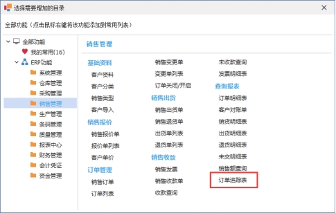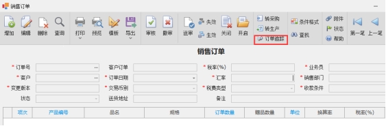 1)通过销售订单串查打开,在销售订单界面点击“订单追踪”串查打开。使用此方式请先查询出销售订单数据