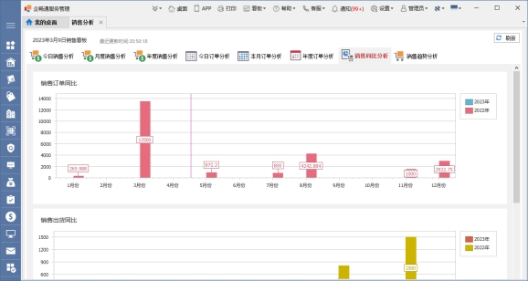 销售同比分析分析本年度和上一年度每月的销售接单金额额,出售额对比