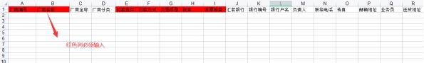 2)编辑EXCEL模板,在打开的EXCEL模板中,编辑需要修改的栏位,红色列是必须输入的。