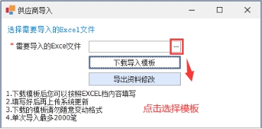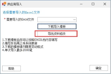 1)导出资料修改模板,在“供应商导入”功能界面,点击“导出资料修改”按钮(如下图)