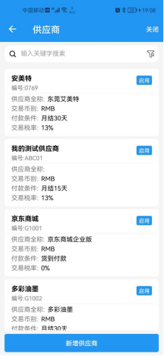 使用手机App可以快速管理供应商,包括新建,修改,删除等。以及能够快速查看供应商相关信息。