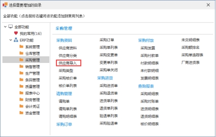 1)进入【采购管理】-【采购资料】-【供应商导入】