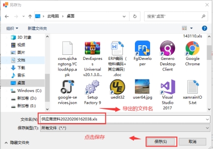2)在弹出的保存对话框选择保存路劲(如下图),点击保存后将自动打开EXCEL模板文件。打开后请记住文件名以在后续上传步骤能快速找到模板文件,建议放置到桌面