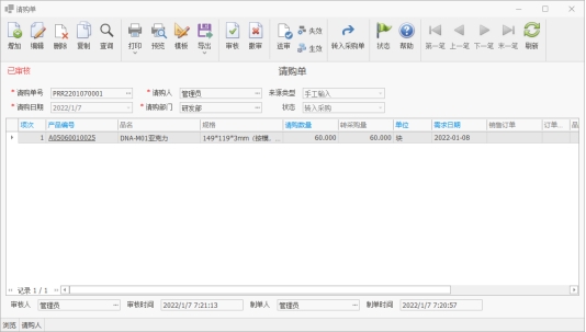 当需求部门提出采购需求时,在ERP系统中称为“请购单”,请购单作为需求部门填写的采购凭据,请购单审核后,将作为采购人员的采购凭据,
