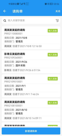 同时采购人员可直接将请购单转入采购单,自动化操作无需人工下采购。
