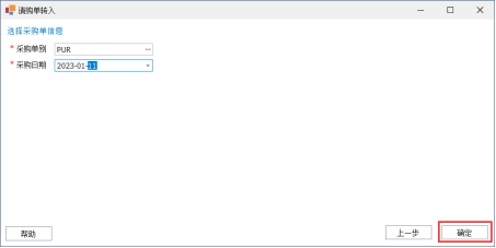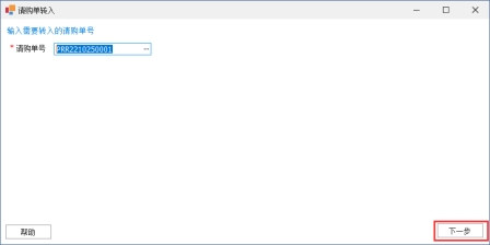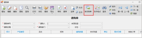 1)在请购单界面点击“转采购单”按钮,打开转入采购单画面