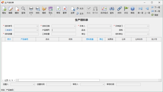 领料数量是指本次领料的套数,在第一次领料时可以指定领料套数,系统将自动按照套数计算需要领用的产品明细